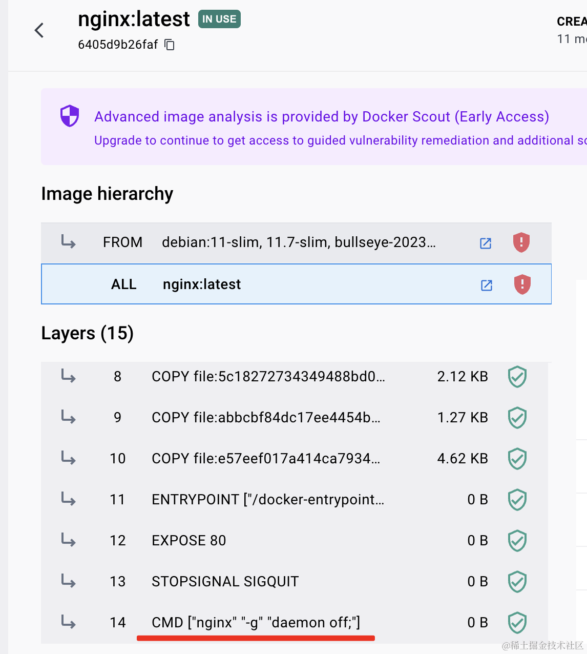 这里的 CMD 启动命令看别的 nginx 镜像的启动命令就行: