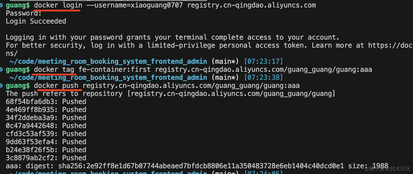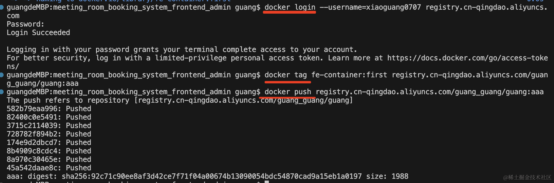 然后重新 docker login、docker tag、docker push 来上传镜像: