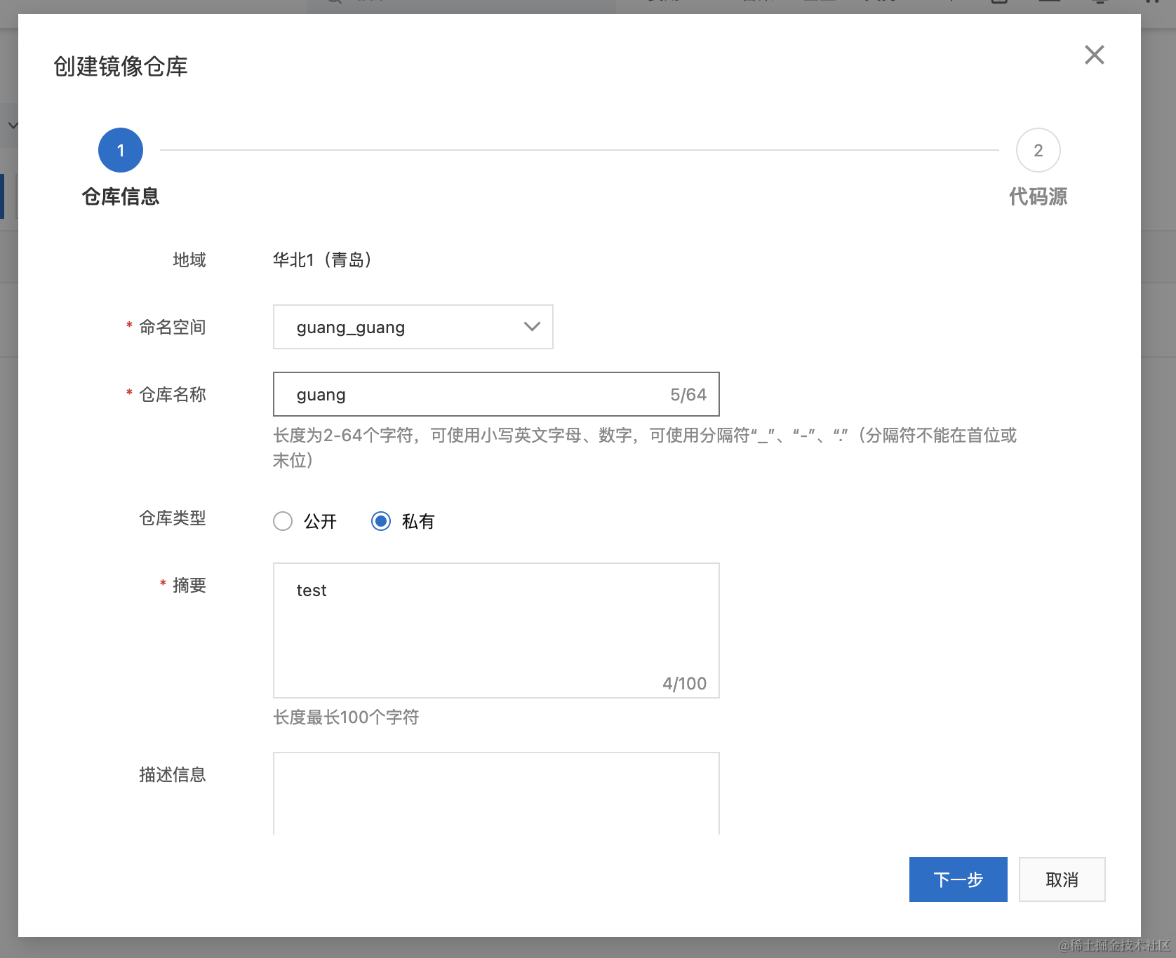 阿里云的容器镜像服务 (opens new window)个人用是免费的:
