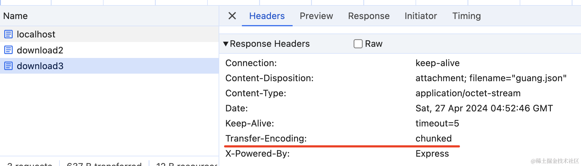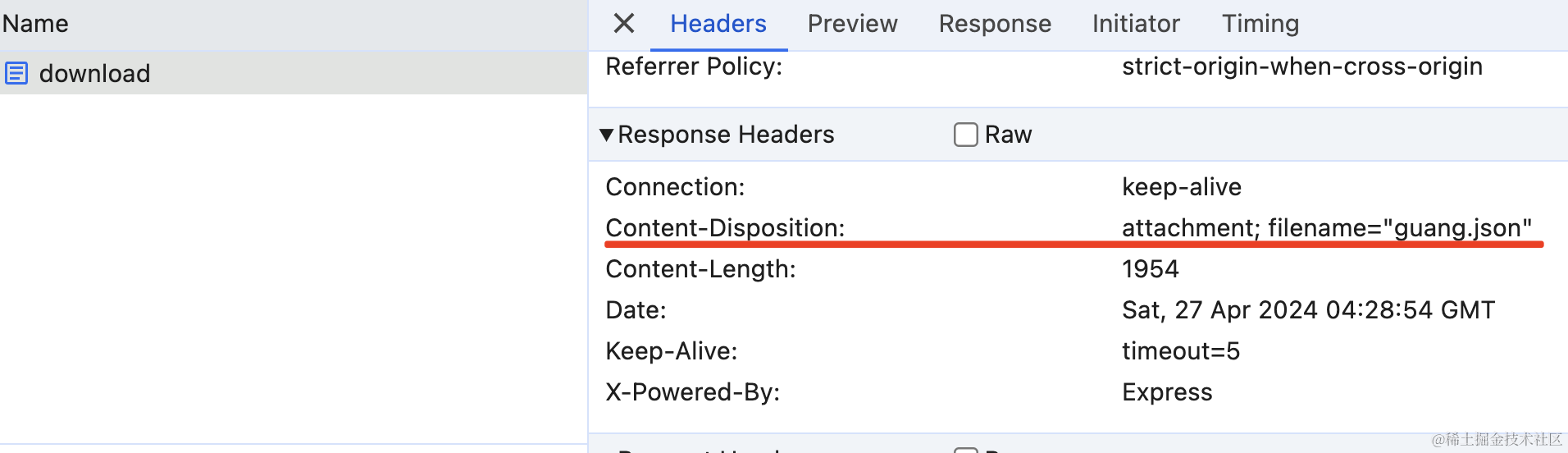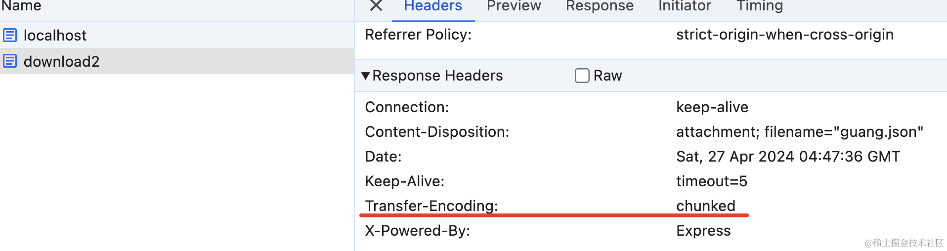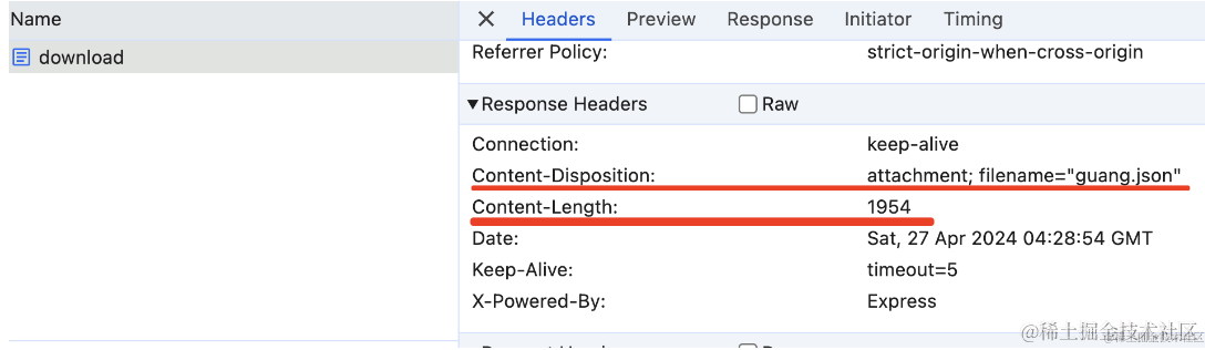 再访问下 http://localhost:3000/download 接口对比下:
