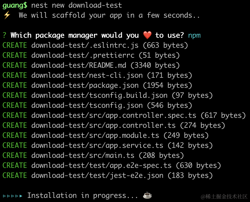 创建个 Nest 项目。