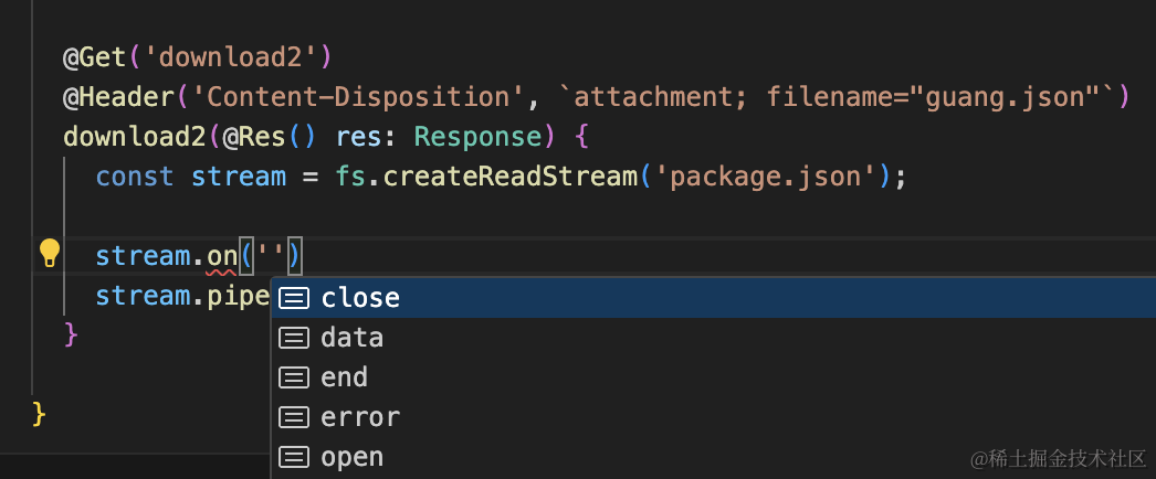 不过在 nest 里最好不要直接用 node 的 stream api。