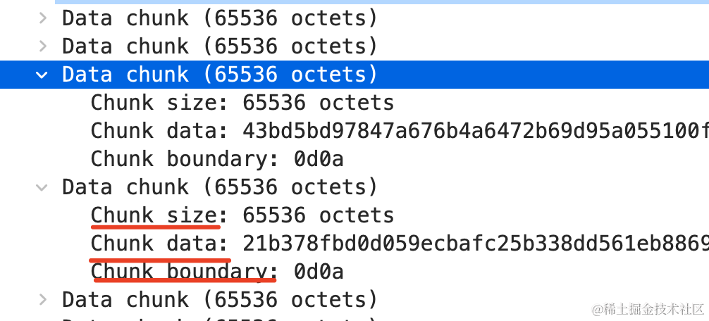 可以看到,确实是分块传输的: