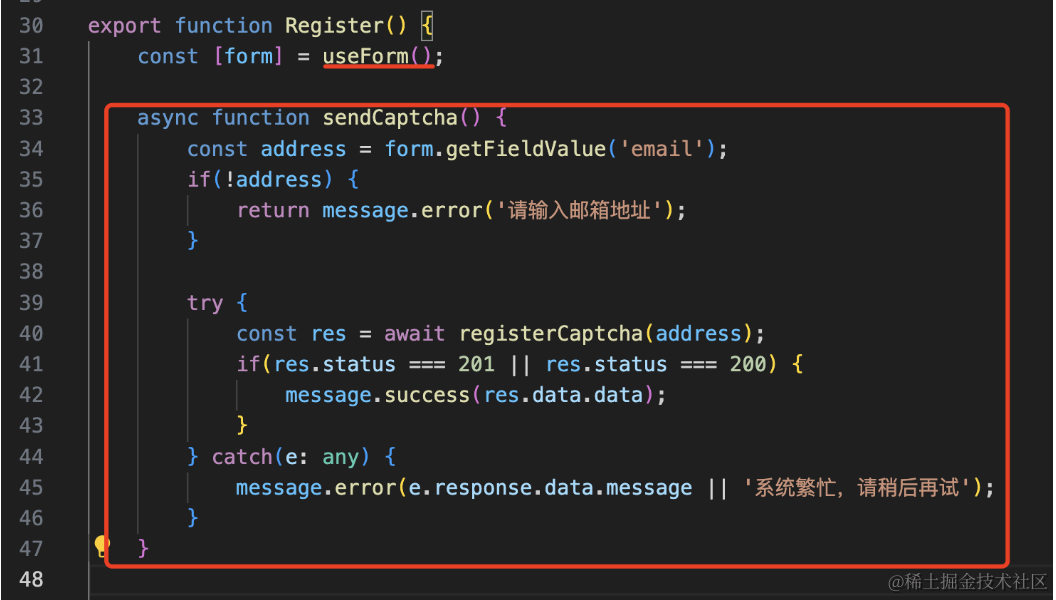 然后调用 useNavigate 的 navigate 方法,注册成功后导航到登录页: