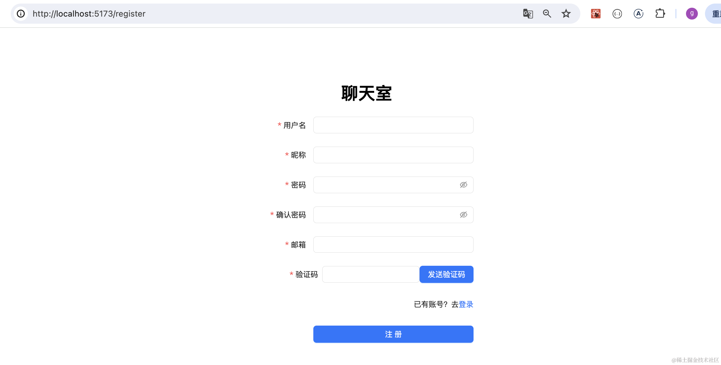浏览器访问 http://localhost:5173 可以看到这个界面: