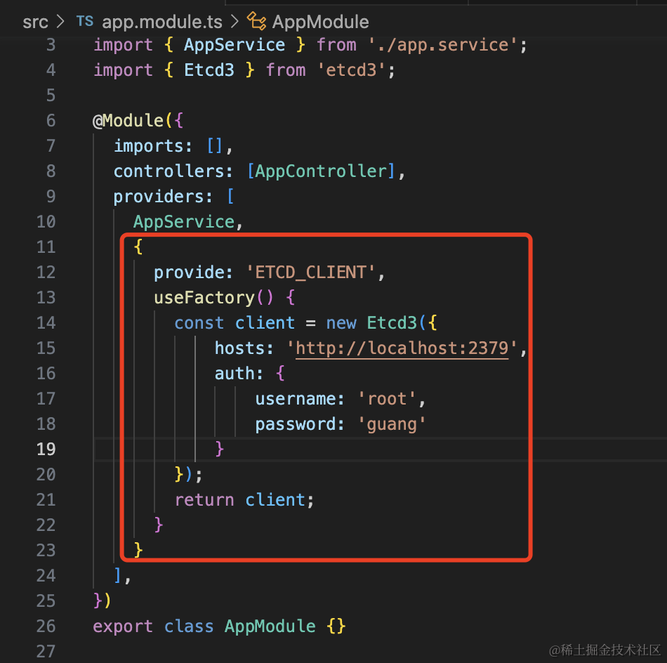 在 EtcdModule 添加 etcd 的 provider: