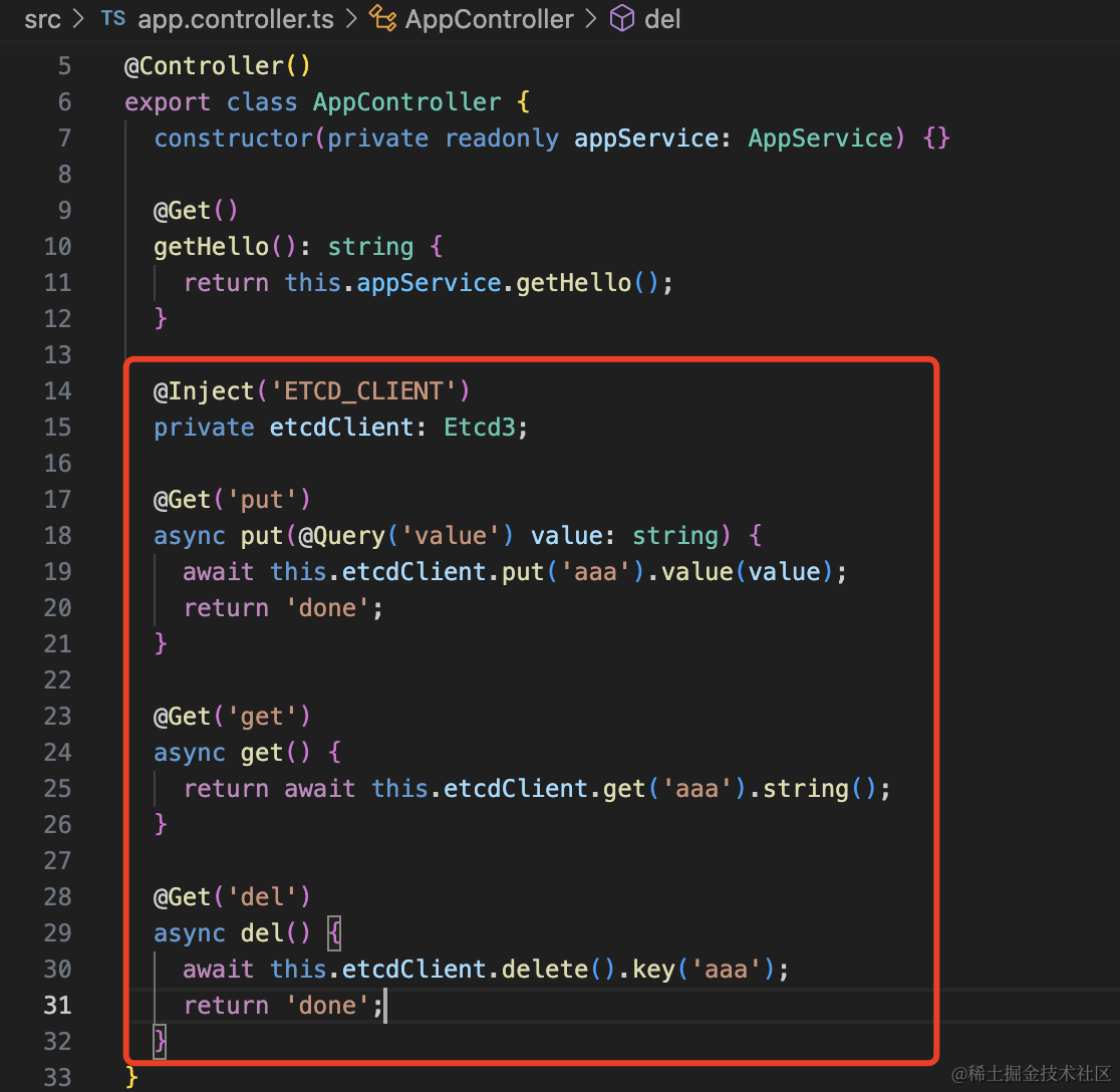 或者加一个 provider 创建连接,然后直接注入 etcdClient 来 put、get、del、watch。