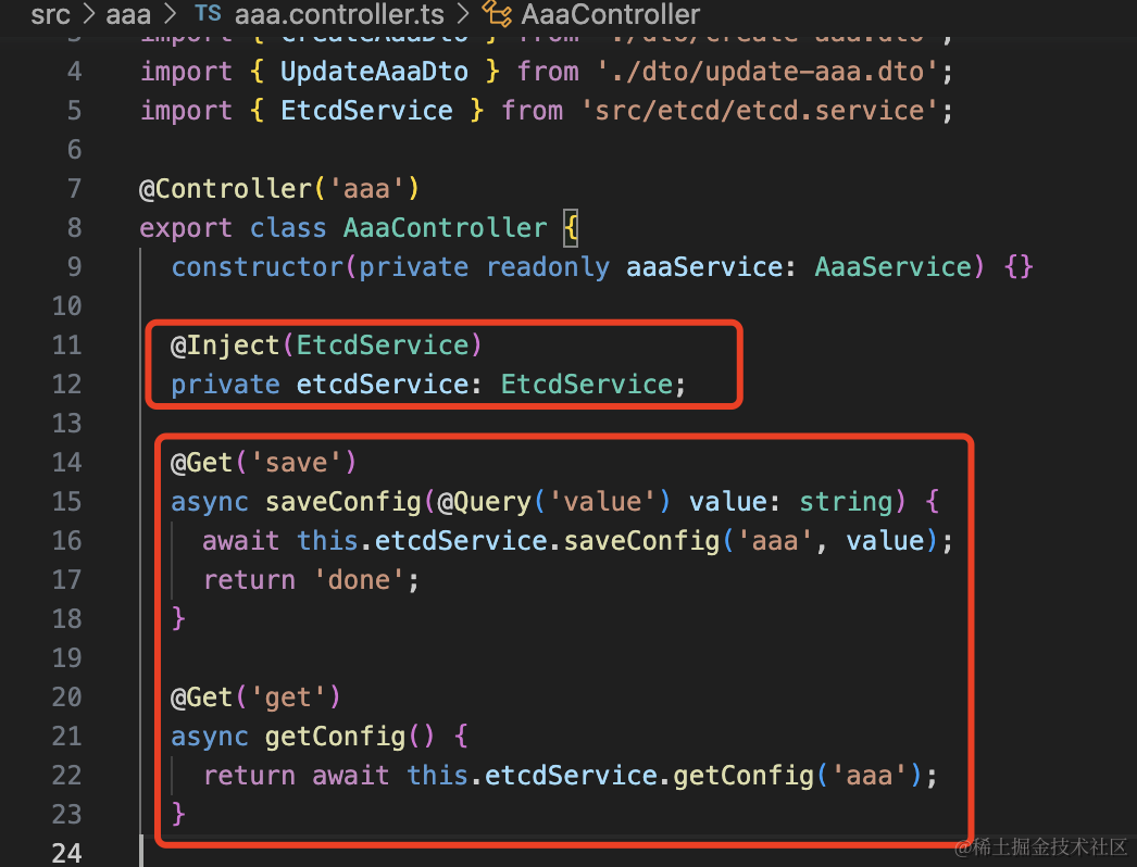 然后在 AaaController 注入 EtcdService,添加两个 handler: