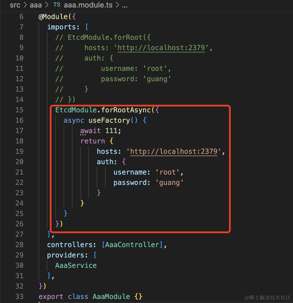 这样,EtcdModule.forRootAsync 就成功实现了。