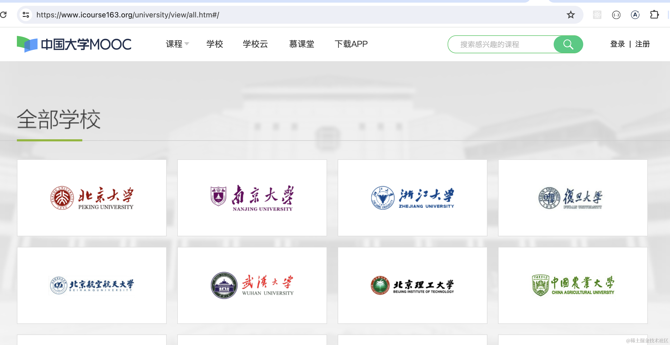 这里大学的信息可以从中国大学 MOOC (opens new window)这里抓取: