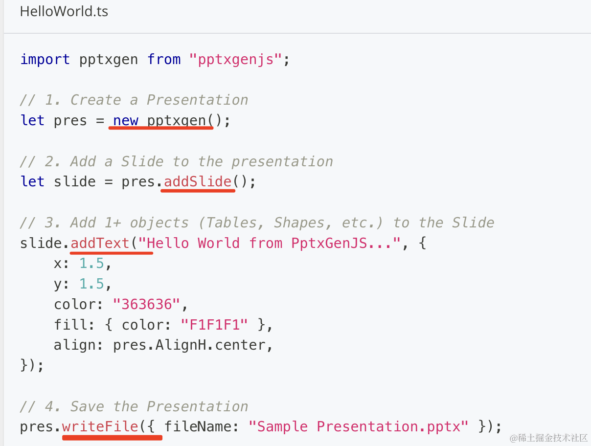 接下来生成 ppt,用 pptxgenjs (opens new window) 这个包。