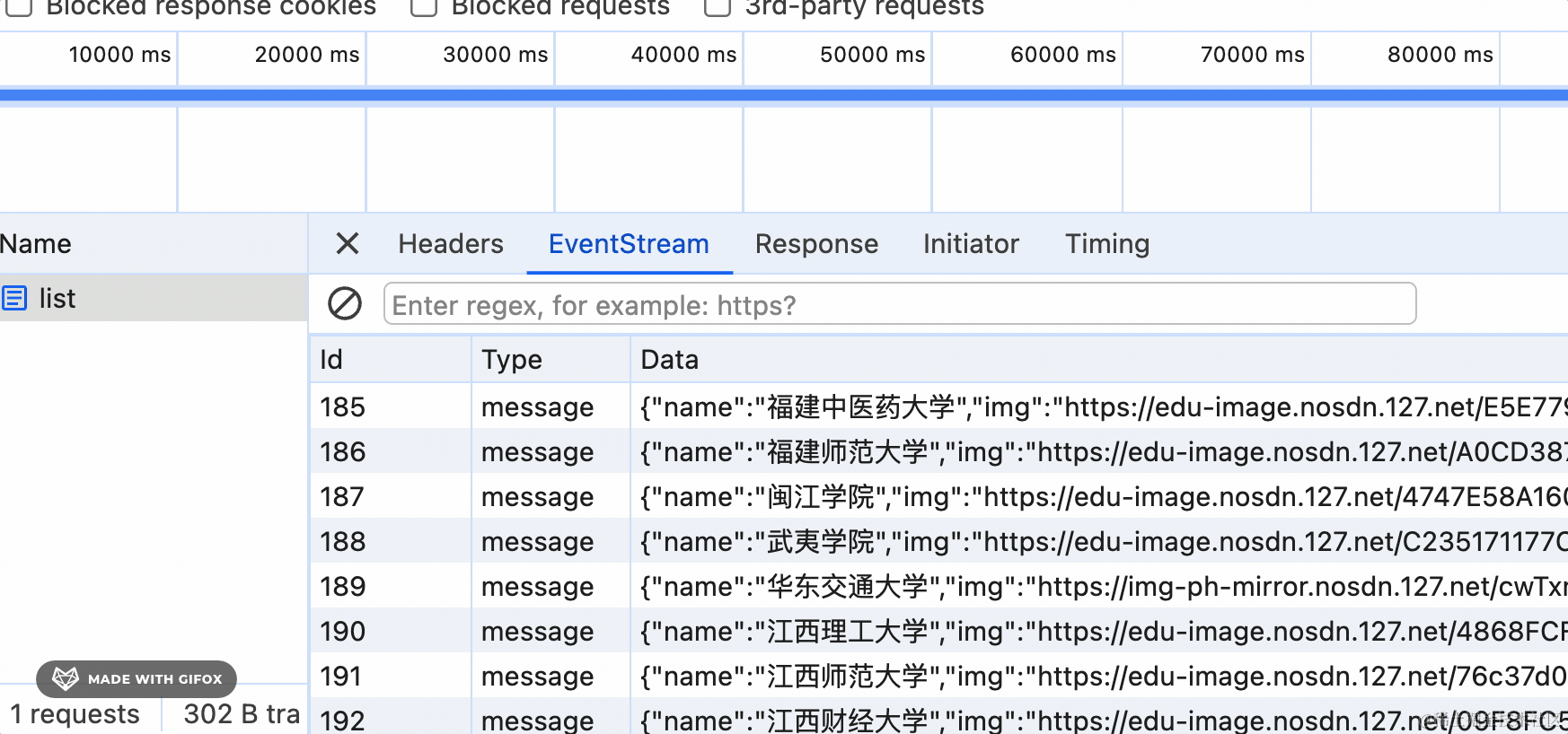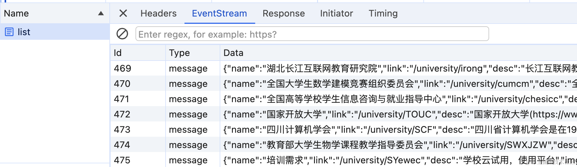 我们使用 puppeteer 抓取了大学的信息,用 SSE 的方式创建了接口,不断返回爬取到的数据。