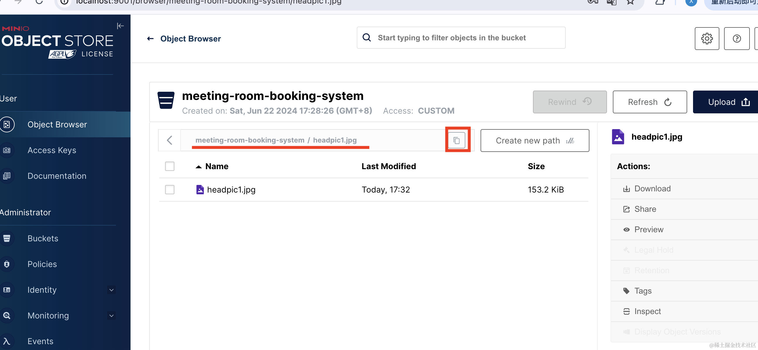 bucketName 就是 meeting-room-booking-system,这个也可以抽到 .env 文件里,用 configService 读取。