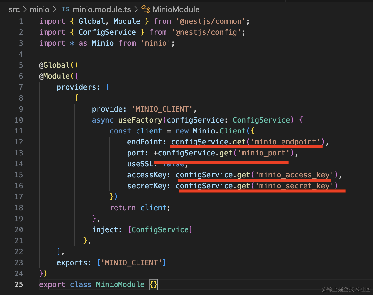 所以可以直接在 MinioModule 里注入 ConfigService: