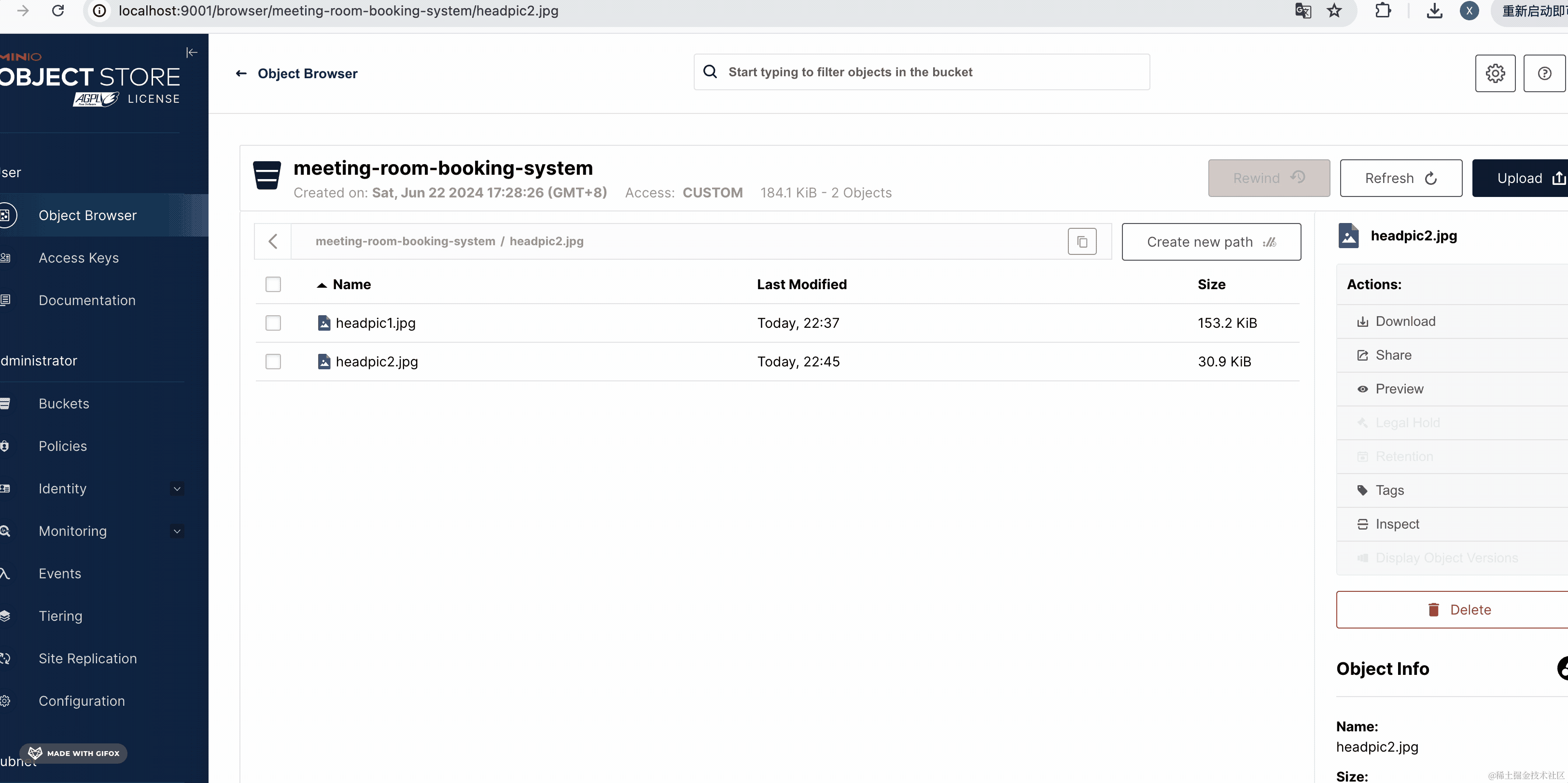 这样,基于 minio 搭的 OSS 服务的图片上传功能就完成了。