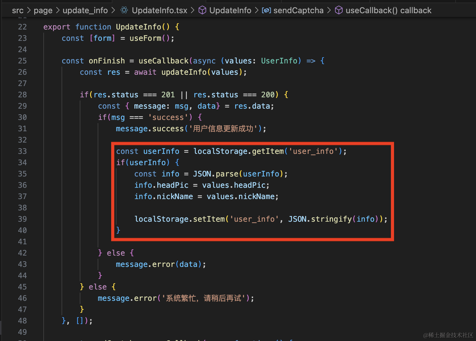首先,用户信息更新完后,同步修改下 localStorage 里的 user_info