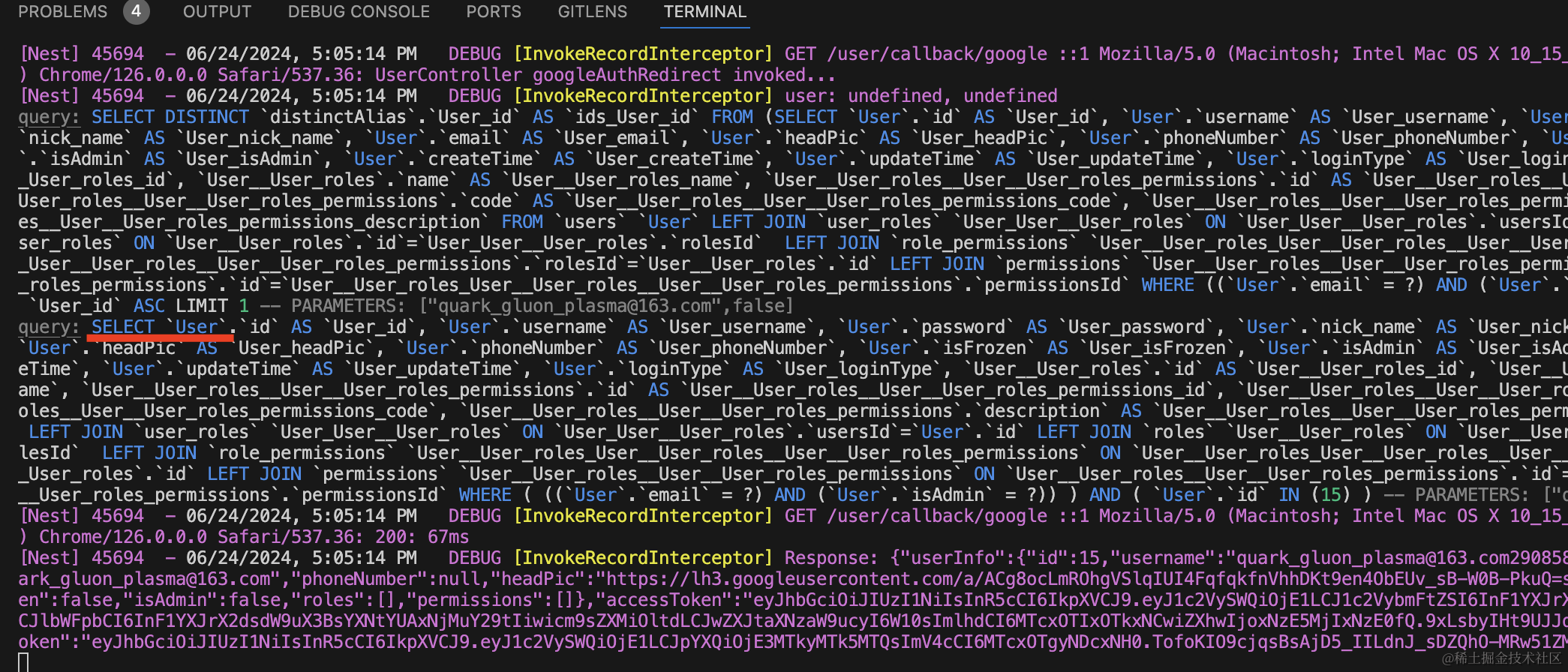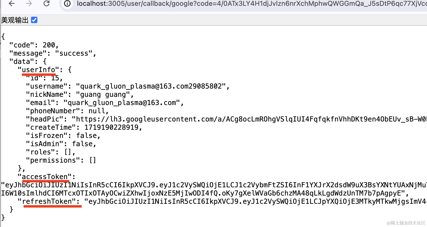 数据库已经注册了这个 google 账号对应的 user,再次授权,会查询注册的用户信息返回。