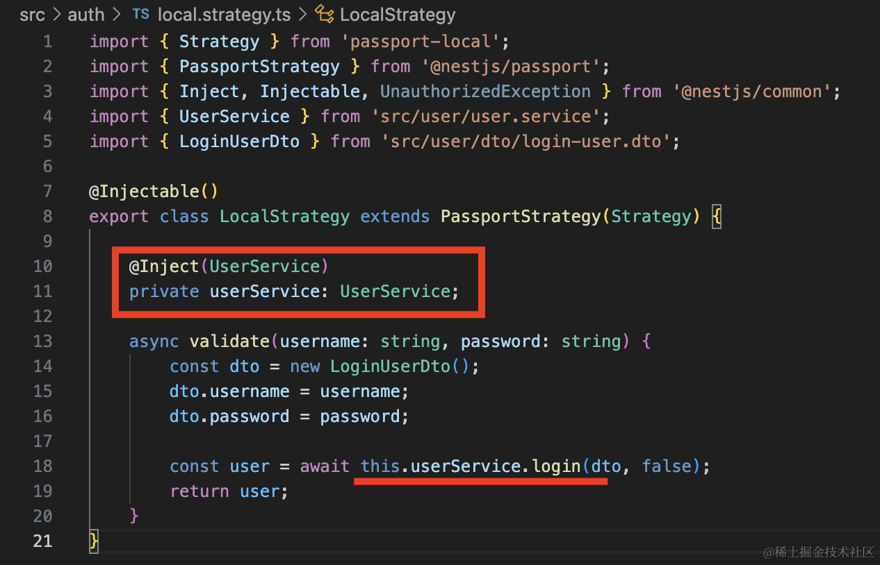 LocalStrategy 里直接复用 userService.login 来做登录认证: