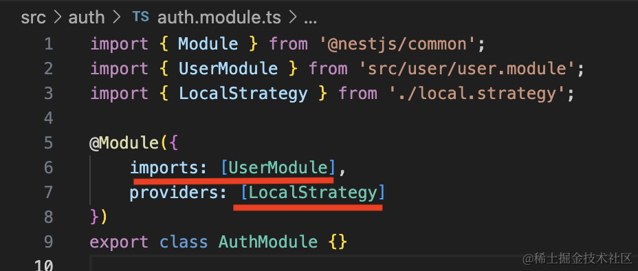 添加用户名密码认证的策略 auth/local.strategy.ts