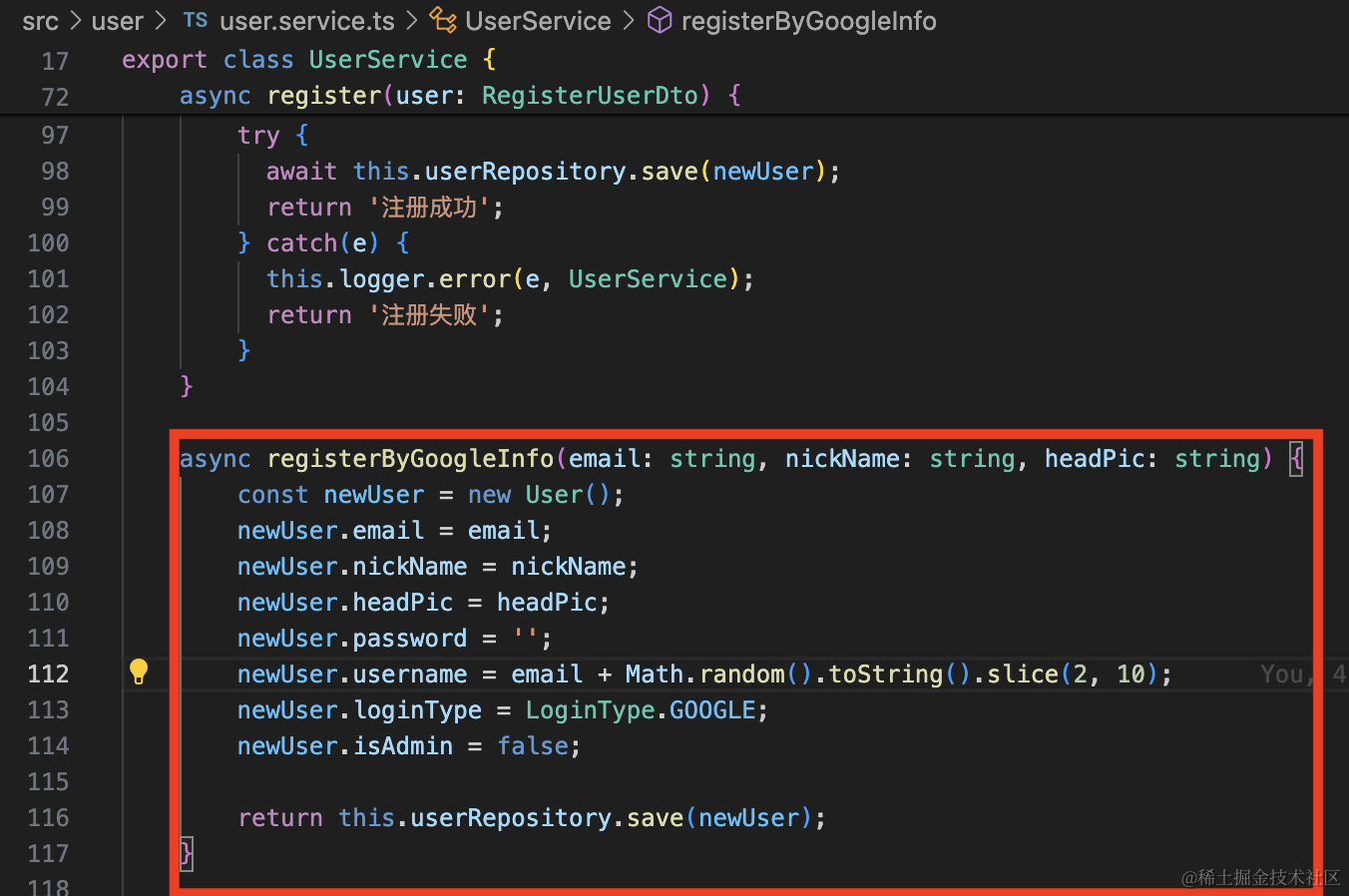 在 callback 的路由里,基于 google 返回的信息做了自动注册,如果用户已经注册过,就直接返回登录信息。