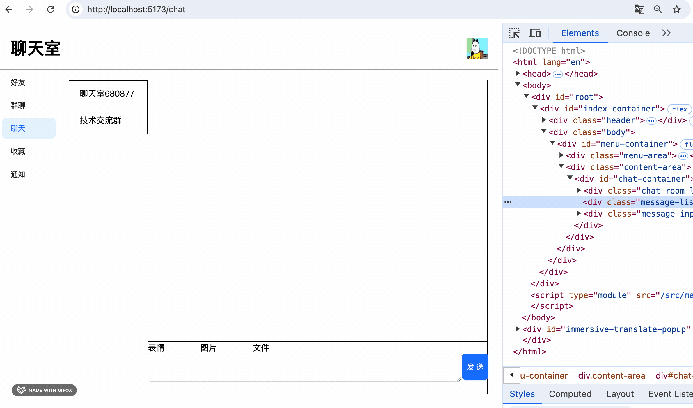 点击左侧切换聊天室,就可以在不同聊天室聊天。