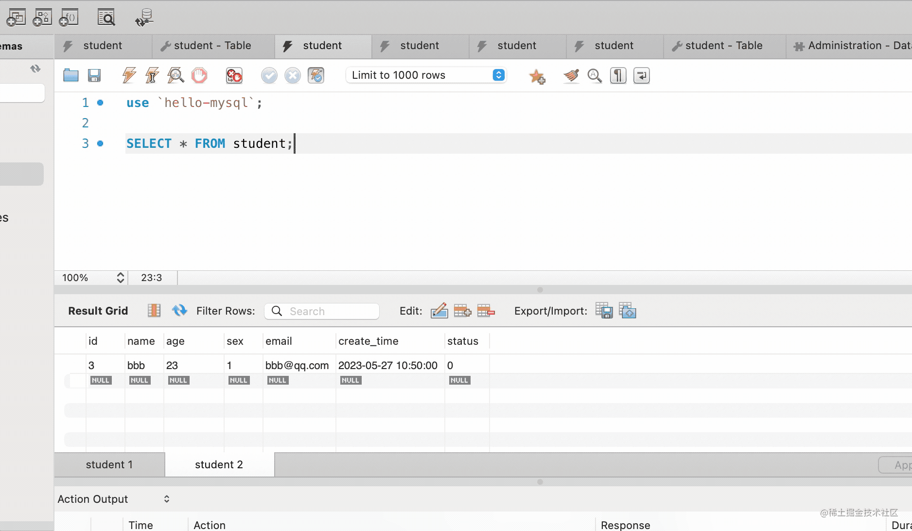点击 apply 之后,mysql 会执行 sql,这时候就可以看到这条记录被插入了: