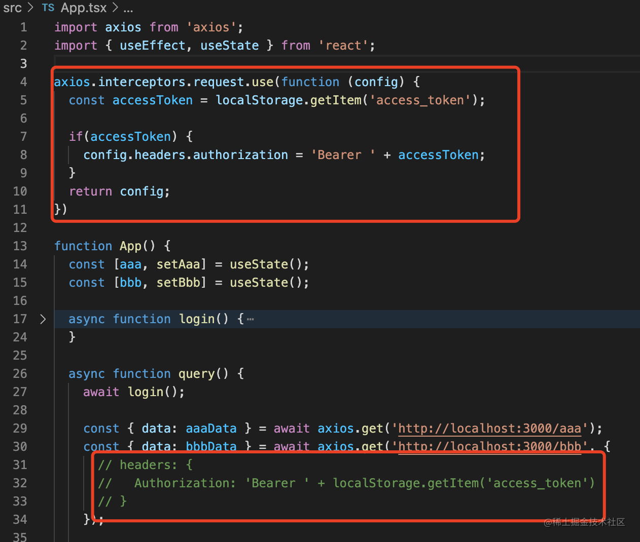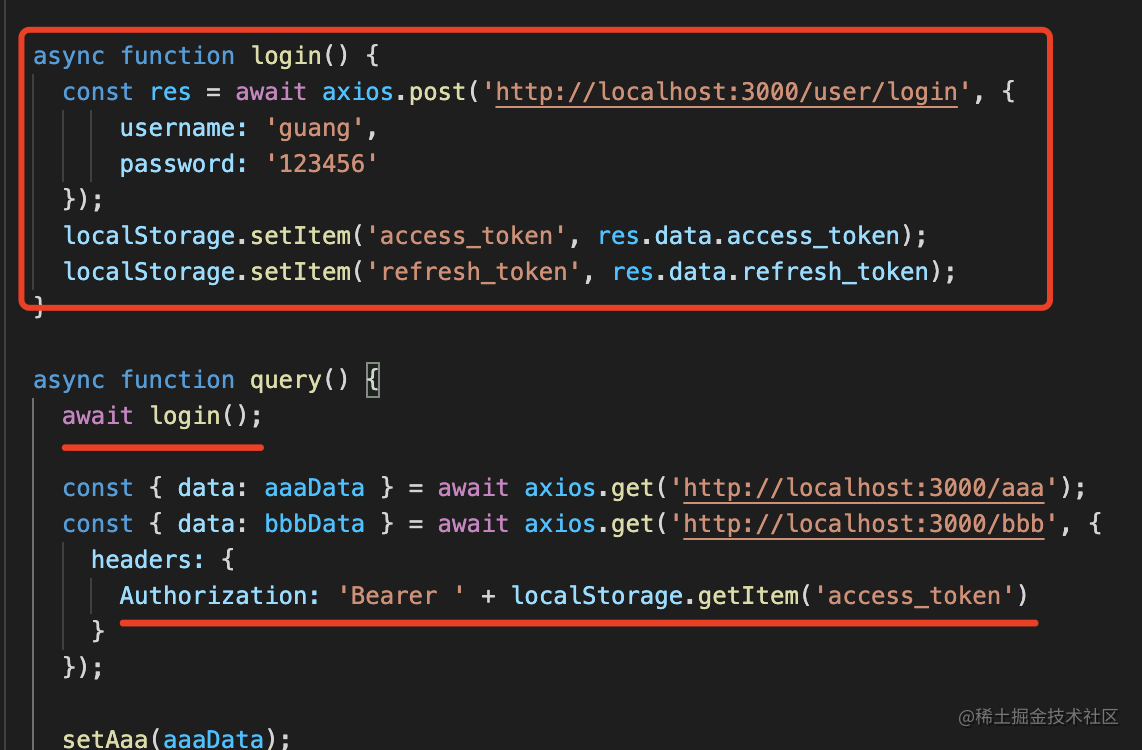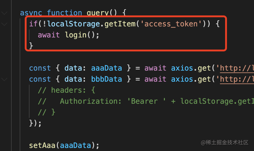然后用 axios 的 interceptors.request 给请求时自动带上 authorization 的 header。