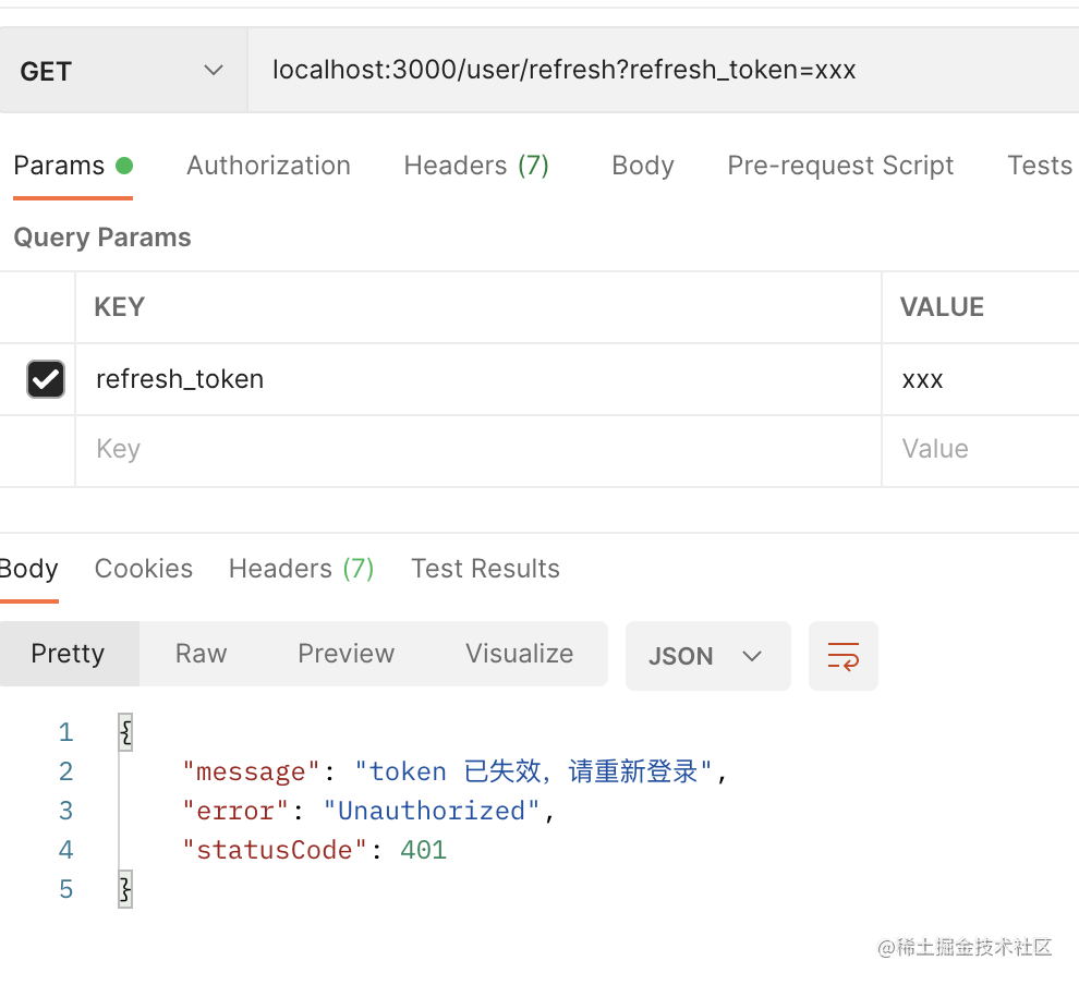 而 refresh_token 用来刷新,拿到新 token:
