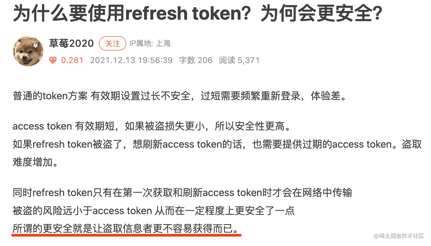 # 最后,为什么说双 token 会更安全呢?
