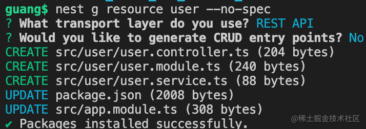 nest g resource user --no-spec