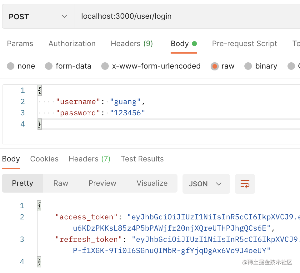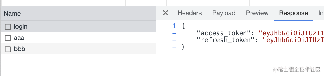 登录成功之后,返回两个 token: