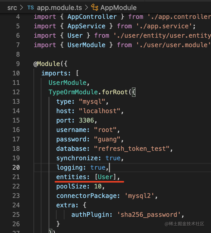 在 AppModule 引入 TypeOrmModule: